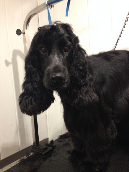 Salon de toilettage pour chiens Heyrieux Mitsie - Cocker Anglais Femelle Toilettage, brushing Avant toilettage : Après toilettage :